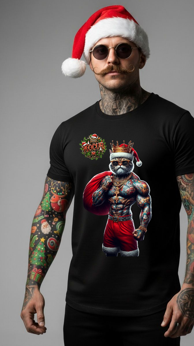 Edycja Świąteczna. Koszulka Kocur w odsłonie Świątecznego Mikołaja. Idealny pomysł na Świąteczny prezent.